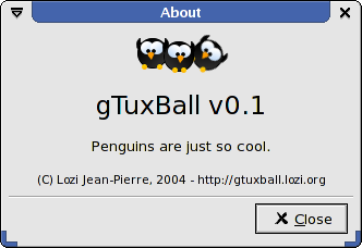 This website is the official web page of gtuxball. This software is a school project I developed in 2004 at the university of Nice. You can either check out the website of a project I developed in the previous schoolyear (a GUI designer for plt-scheme), or the java school project I developed with another student in 2003. gTuxBall is a classic wallbreaker game, developed using the GDK/GTK+ toolkits. Please visit the support section for more information and help about the game. Here are a few screenshots :